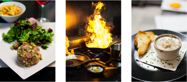 Les amateurs de viande seront comblés par le traditionnel tartare de bœuf, où l'assaisonnement est laissé à leur choix, accompagné, bien sûr, des célèbres frites fraîches maison qui font la renommée du Scoop.
